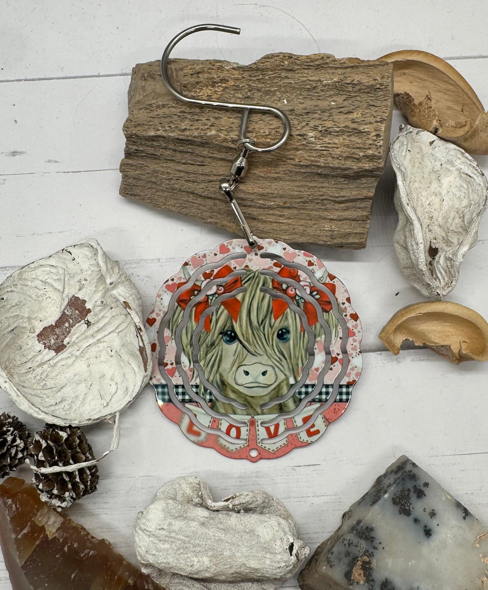 8 inch Valentines Day Cow Wind Spinner